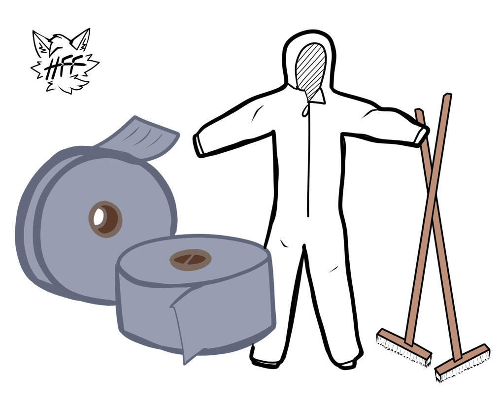 Il faudra vous munir de 3 composants essentiels:-du scotch adhésif gris (Chaterton), tout dépend de votre corpulence mais pensez à prendre plus ou moins 4 rouleaux de 25m pour être sûr.-une tenue de peintre jetable à votre taille, pas besoin de prendre plus grand.-2 ballets ou bâtons pour maintenir vos bras en position, vous verrez pourquoi en suivant le tuto.