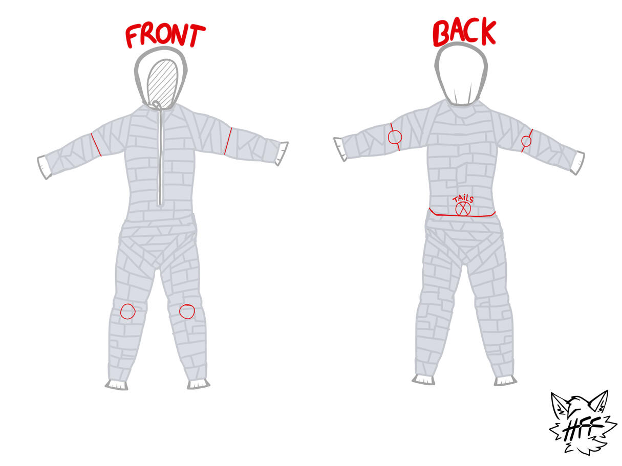 | Fullsuit (digitigrade) | 3800 | Tête + pattes (Mains + Pieds)+ Queue + Corps(digitigrade) (3100 si pattes "pied" avec coussinet) |